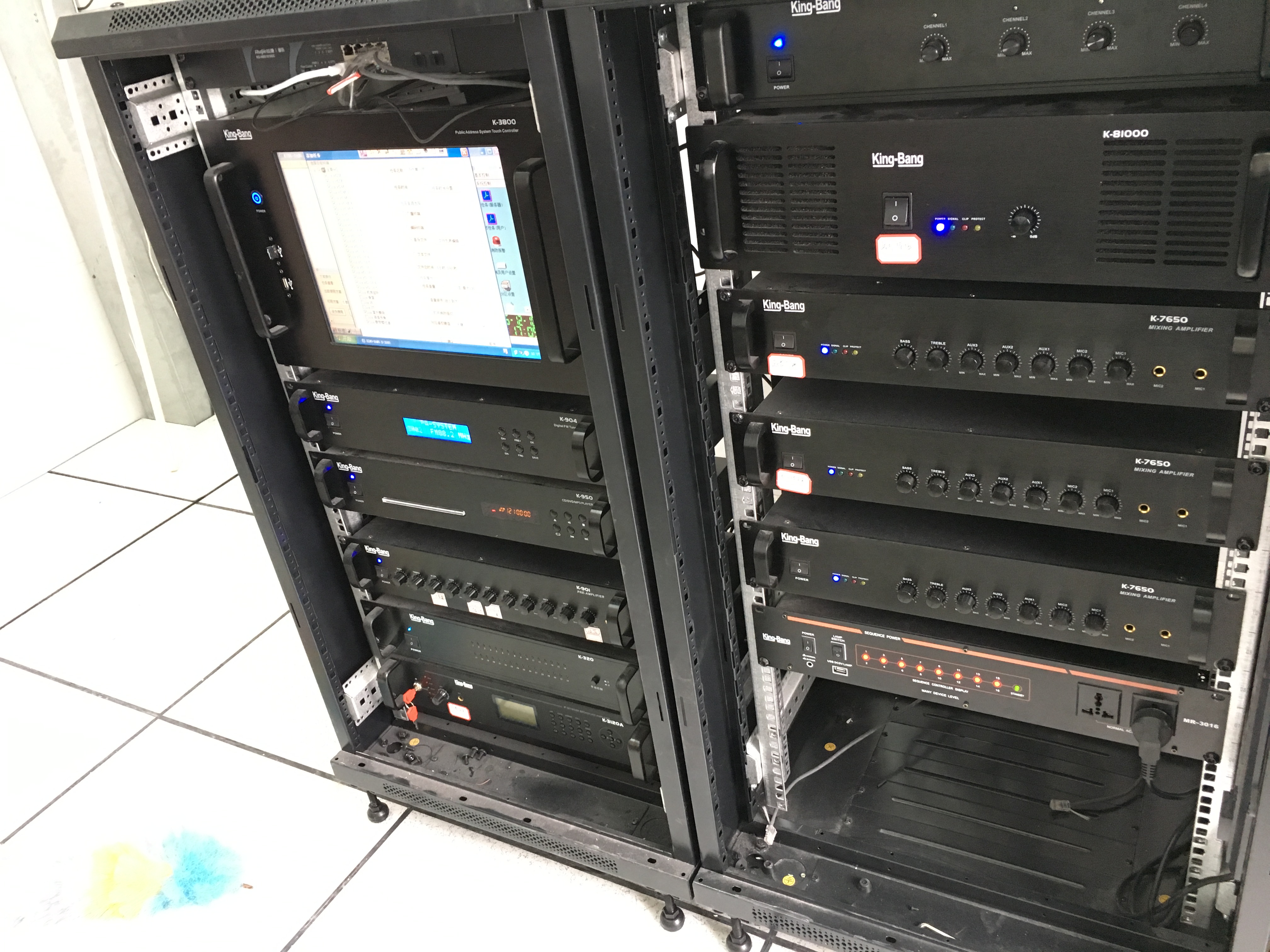 主控機房設(shè)備:在廣播控制室設(shè)置IP網(wǎng)絡廣播麥克風(S-609)、數(shù)字調(diào)諧器(K-904)、IP網(wǎng)絡音箱(K-316)、IP網(wǎng)絡消防報警主機(K-320)等設(shè)備。