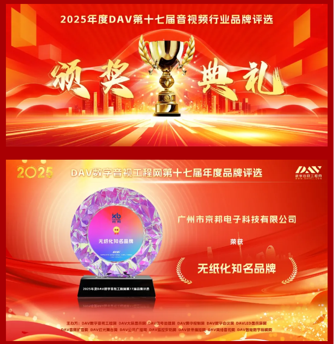 【喜報】京邦電子榮獲2025年度DAV數字音視工程網三大權威獎項,助力贏得市場矚目